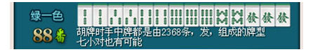 胡牌说明:基本胡牌型的一种,以七种对子成和,24番,如果手中有四张相同牌,不能开杠;如果全是风牌(东南西北中发白)的七小对,则是64番。